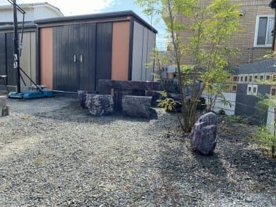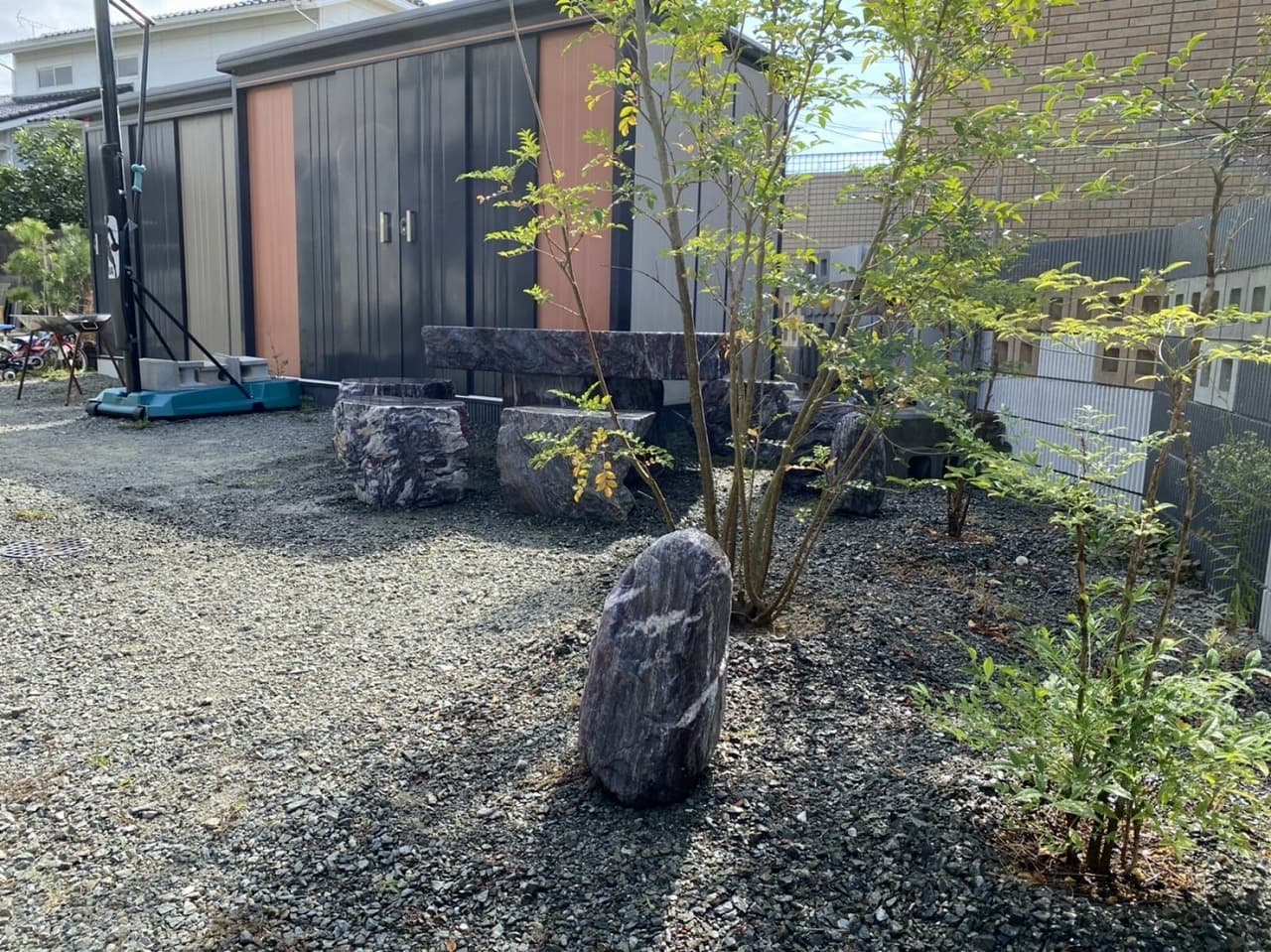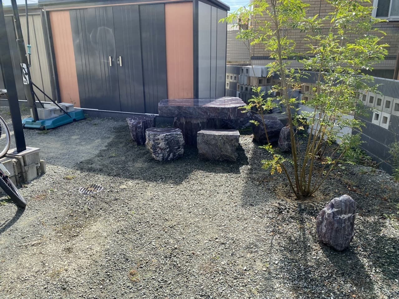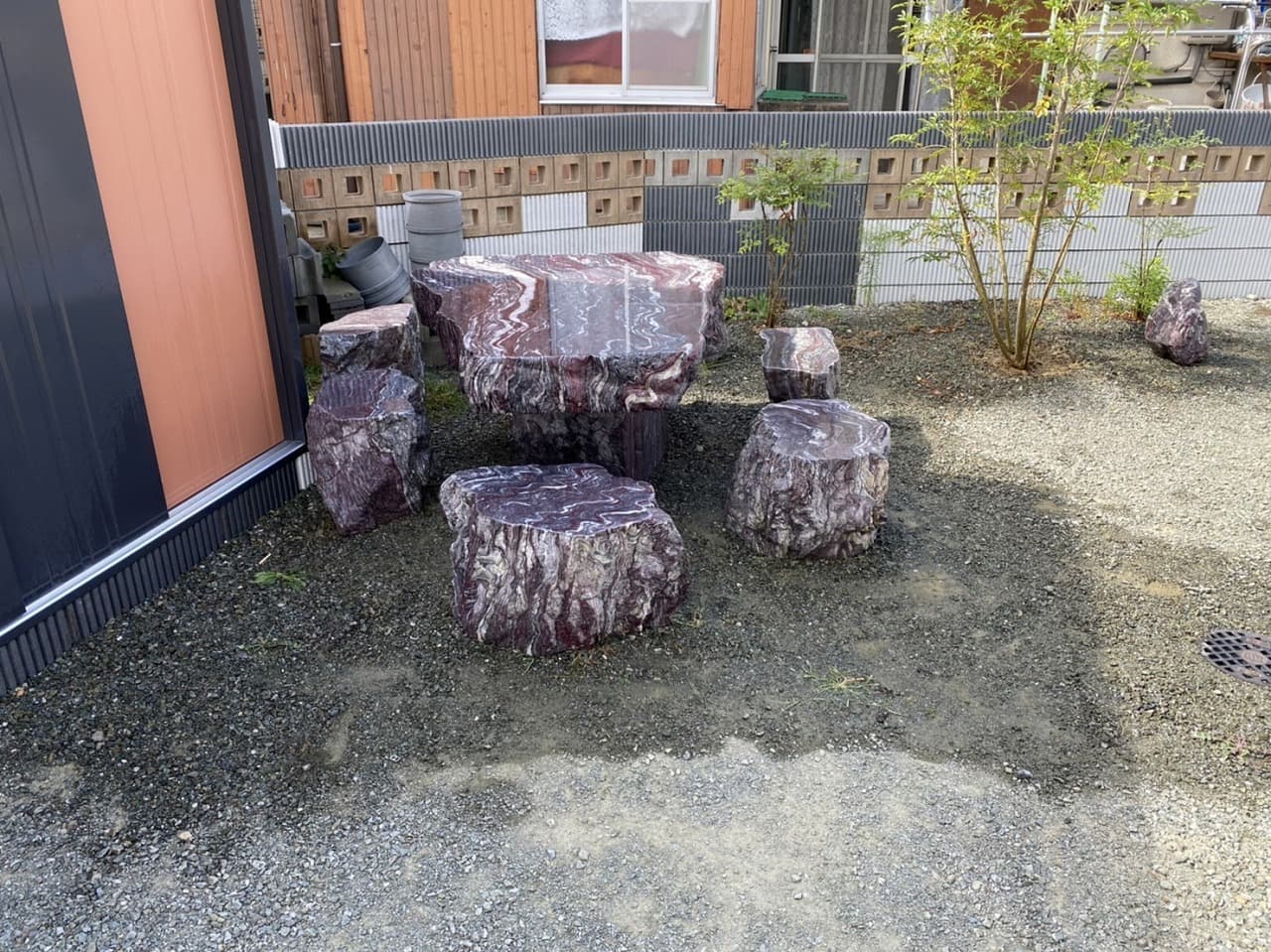 青石のテーブルはよく見るのですが、赤石は見たことがなかったです。