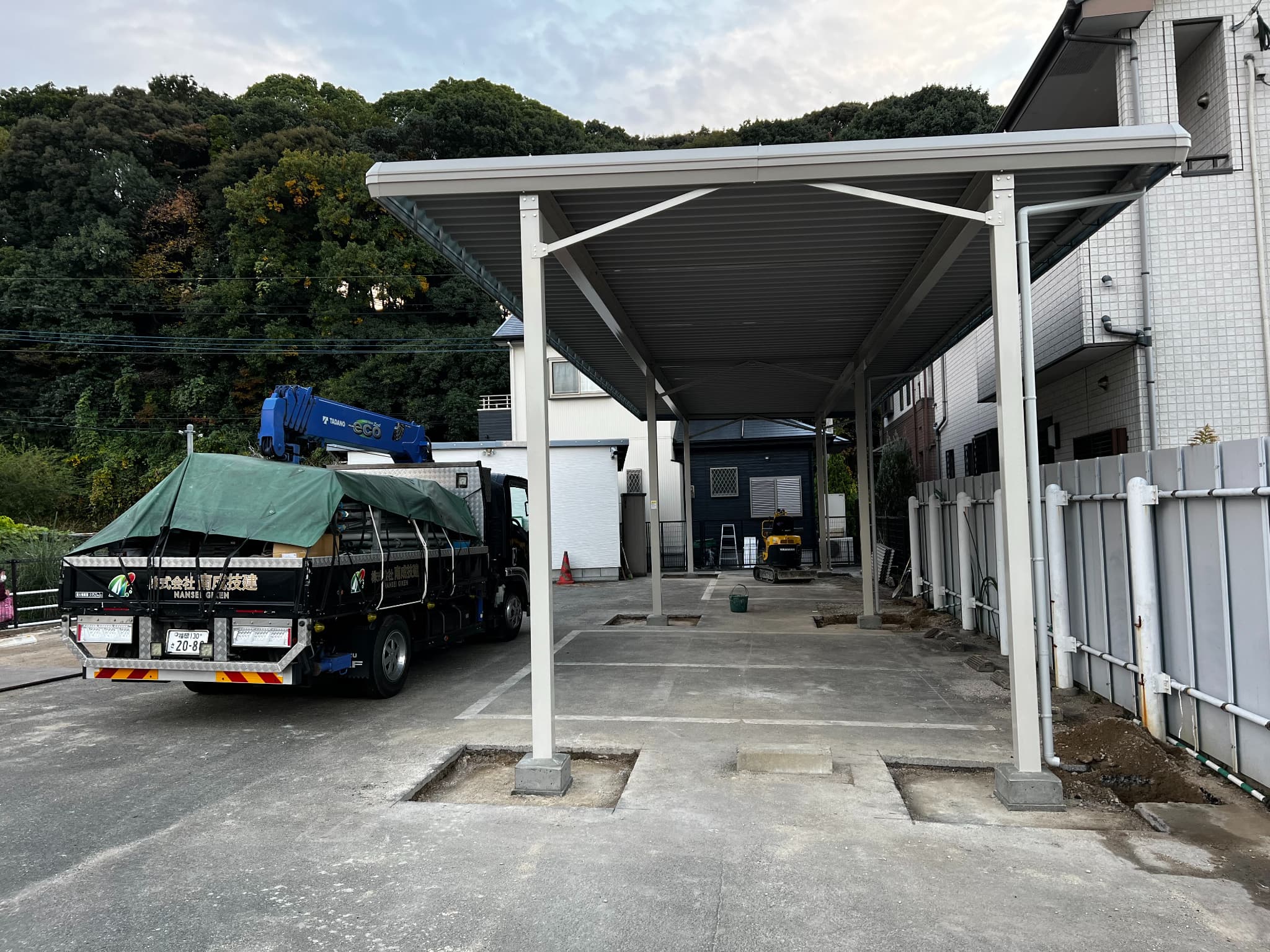大型カーポート開口16m奥行5.2m高さ3.6m|株式会社南成技建