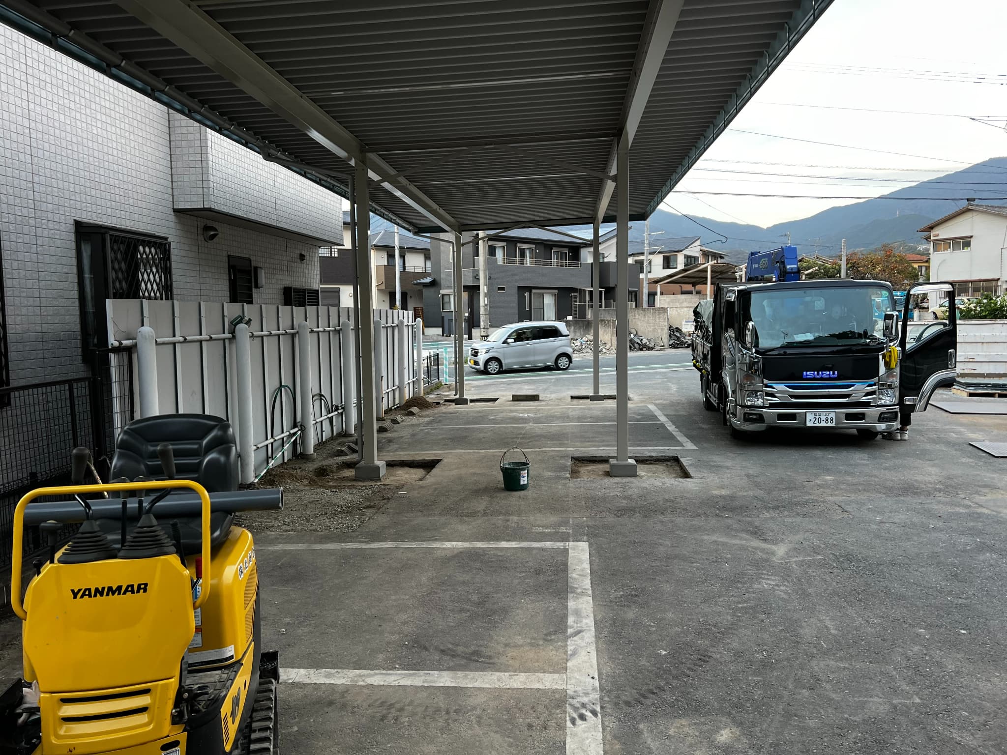 これだけ開口が広ければ作業車や重機が何台も止められますね。
